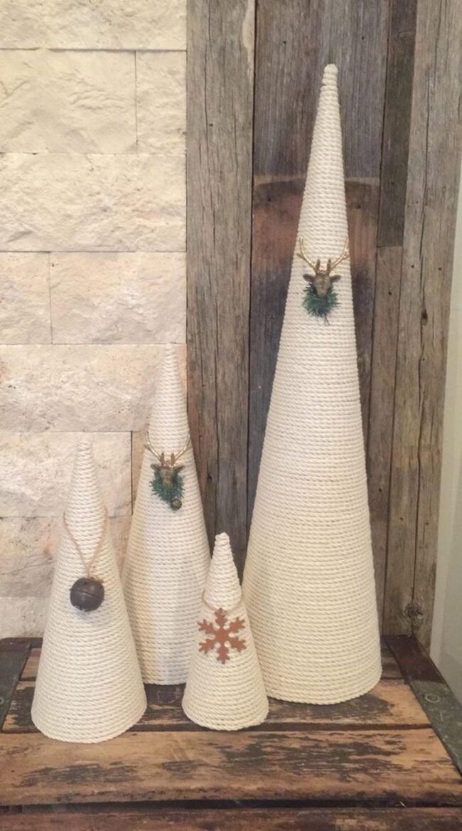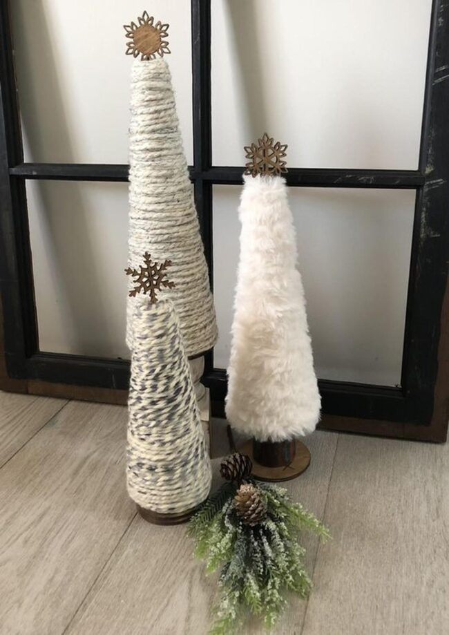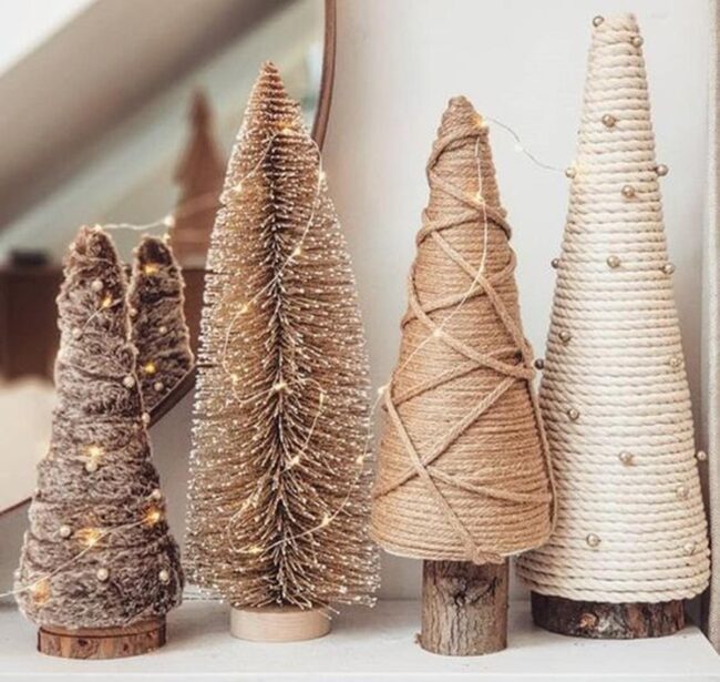Handcrafted cone trees become stunning focal points when wrapped carefully with natural fibers, inviting soft light to dance across their intricate surfaces.