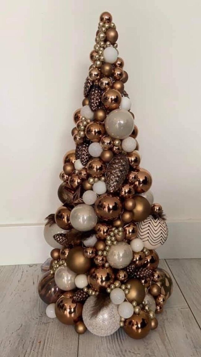 Each carefully positioned ornament nestles perfectly against its neighbors, forming a gorgeous tree-like structure without messy needles or maintenance worries.