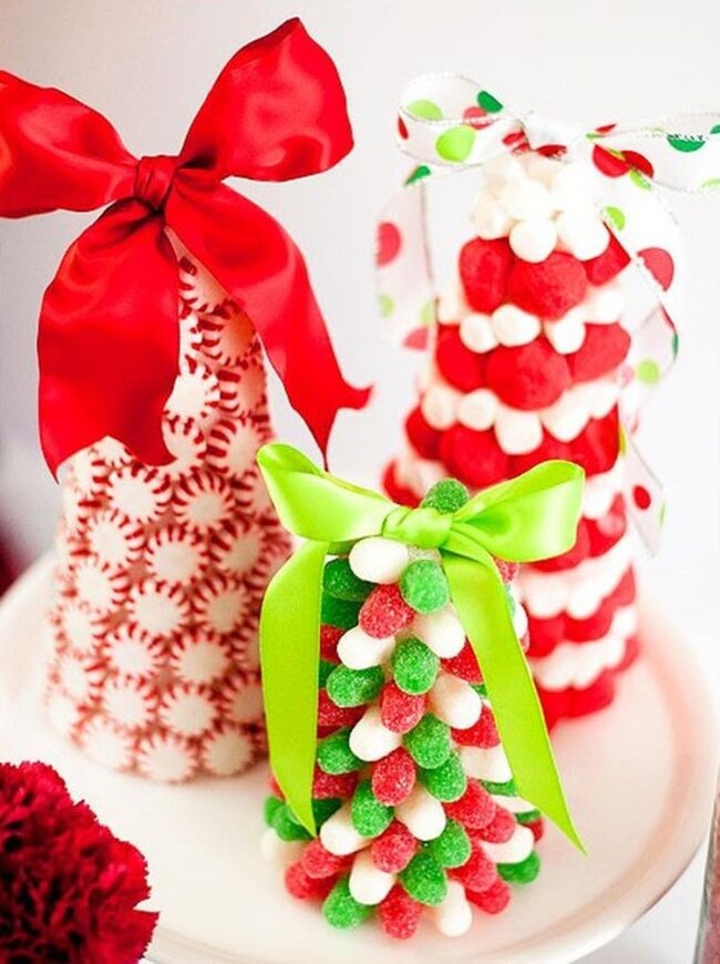 Sweet holiday magic sparkles with candy trees that bring festive cheer right to your dining space.