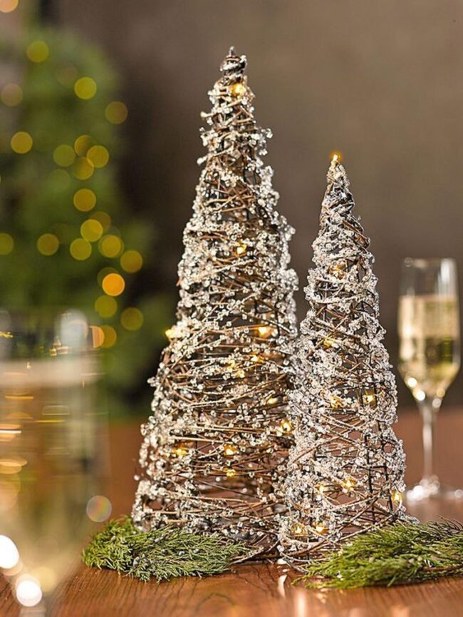 Winter magic sparkles through delicate white-lit twig trees, redesigning wooden surfaces into enchanting displays that instantly draw eyes and hearts.
