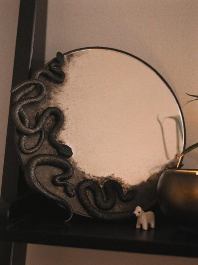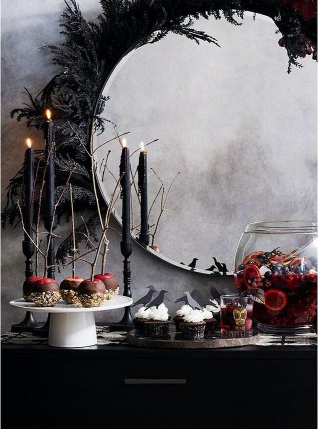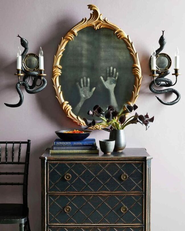 A few well-placed candles, dim lighting, and cobweb textures can transform any reflective surface into something spine-tingling.