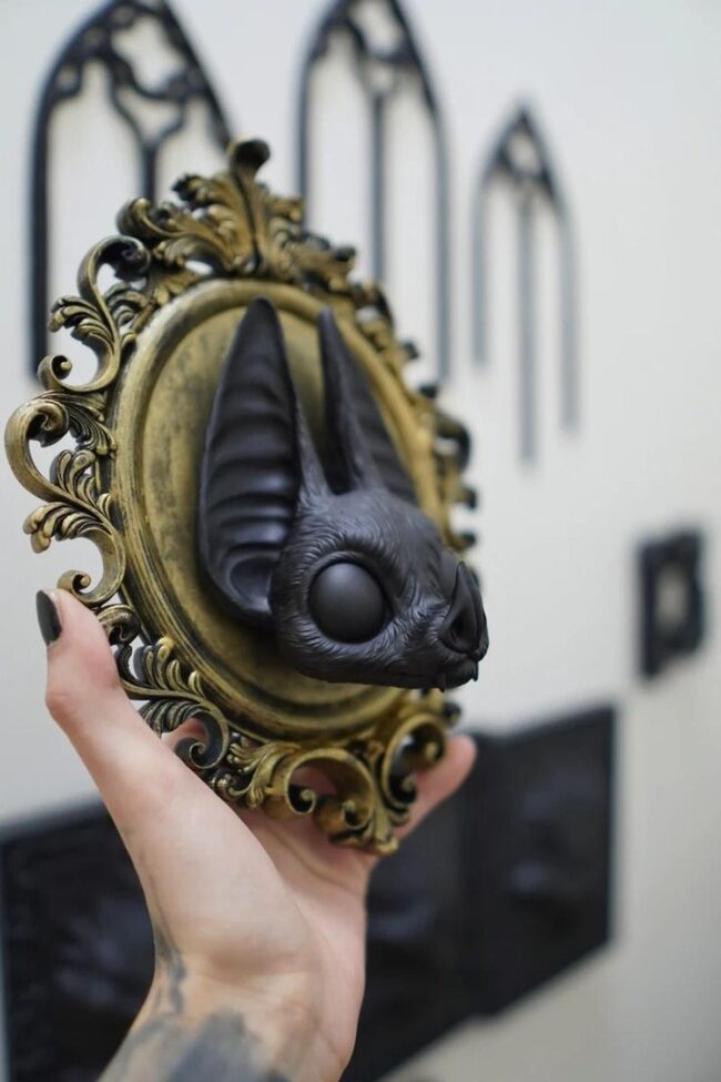 Bat art brings unexpected charm to wall decor with its intriguing silhouette and mysterious appeal.