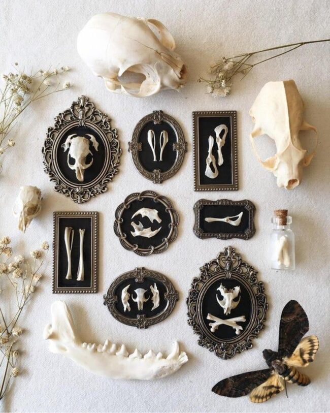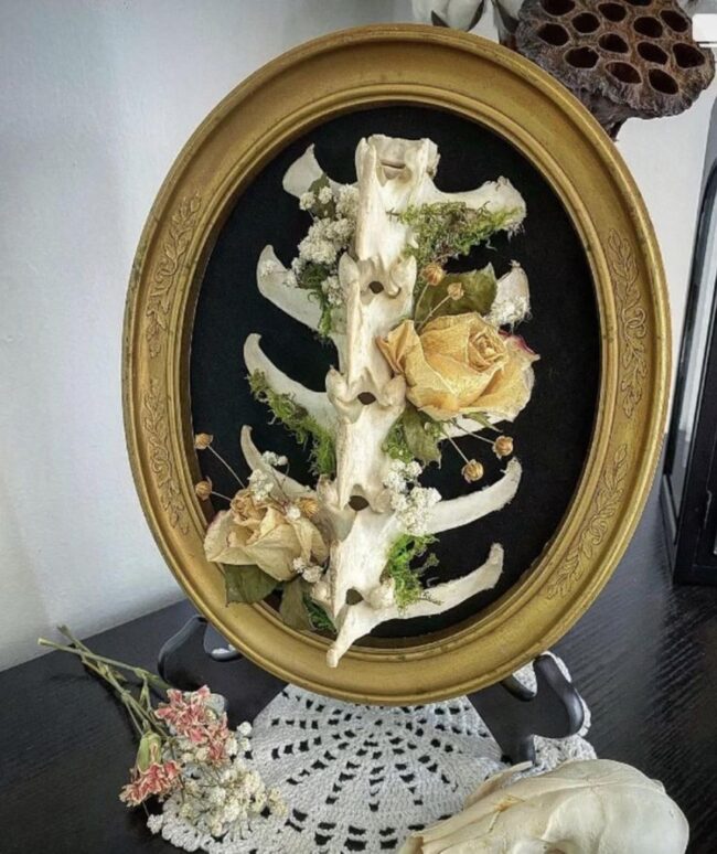 Handcrafted qualities whisper stories of artistic passion and nature's mysterious connection to skeletal forms.