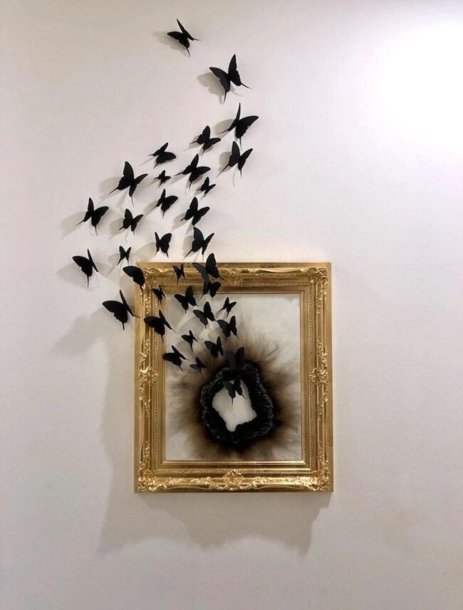 Black insects glide with remarkable freedom, their silhouettes revamping ordinary wall spaces into extraordinary visual journeys.