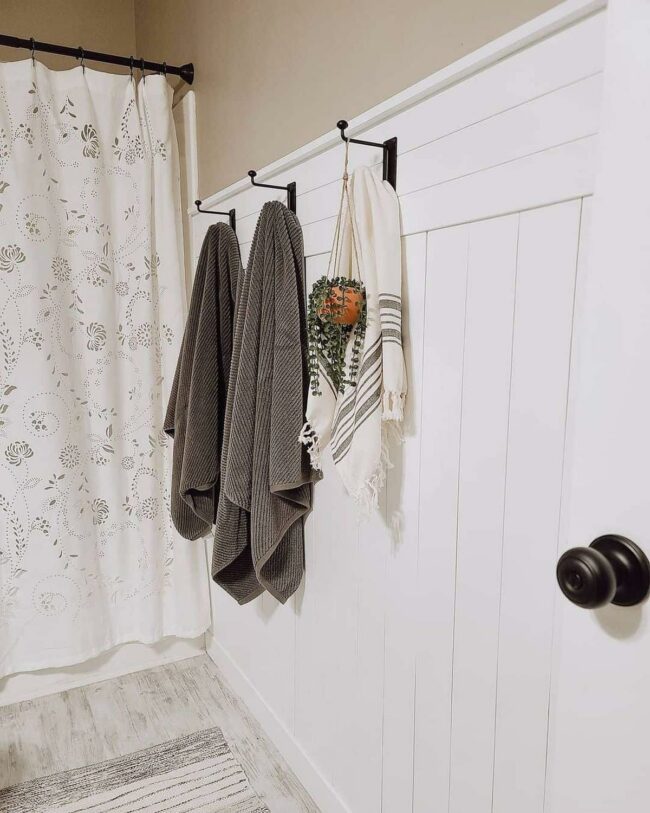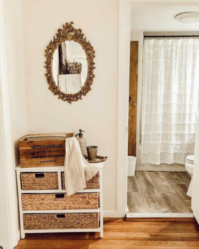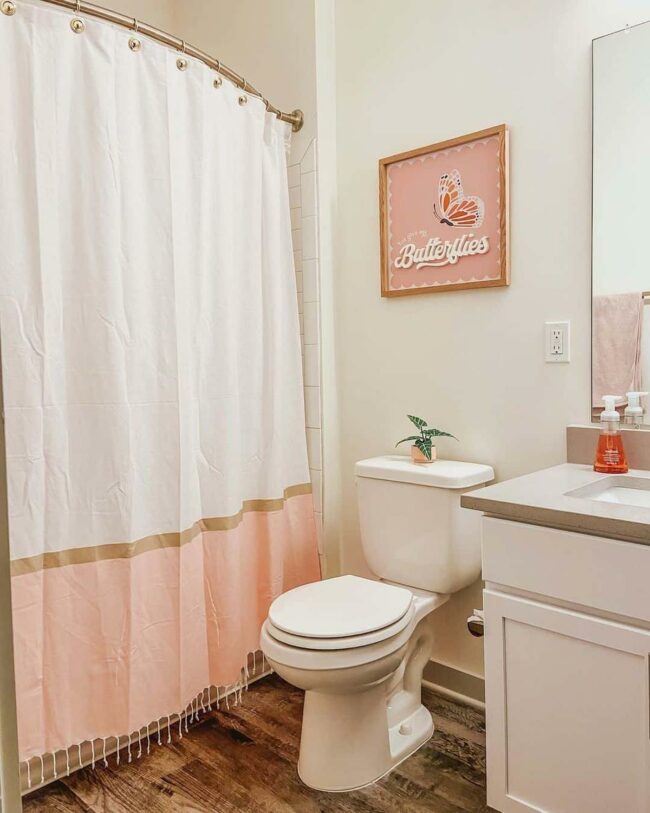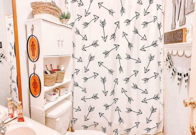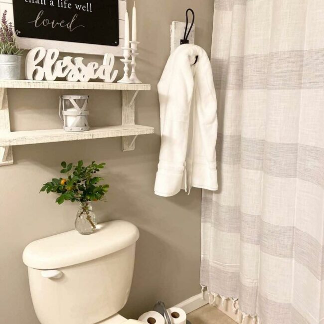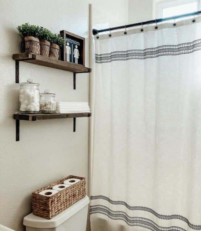 Neutral farmhouse shower curtains radiate warmth and style, instantly elevating bathroom design with their understated charm.