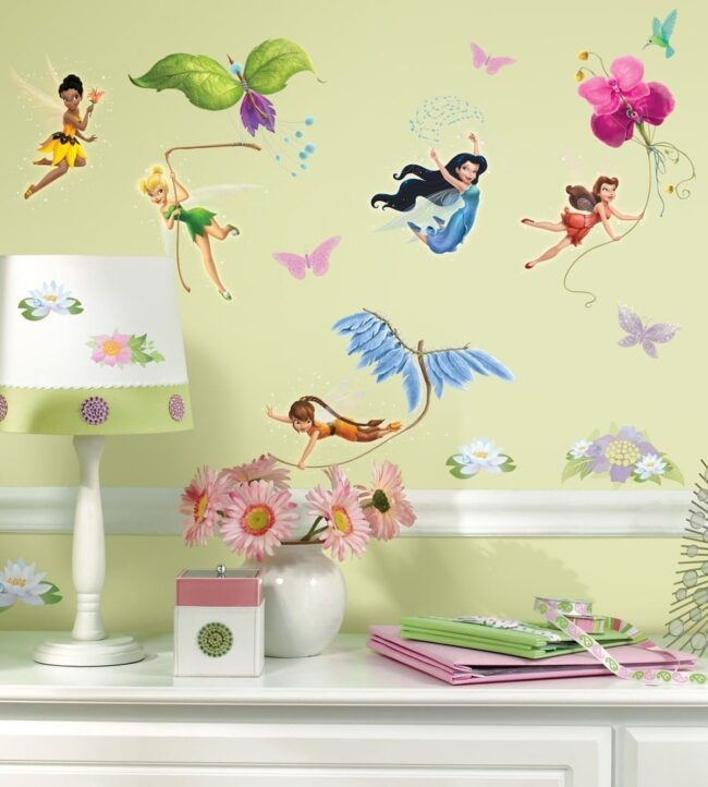 Pastel walls adorned with delicate flowers and playful fairies create light and airy atmospheres that feel both enchanting and personal.
