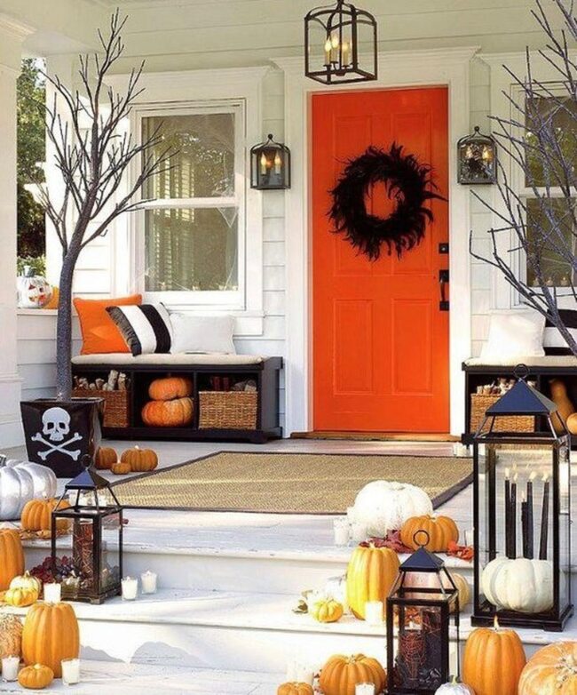 Playful orange pumpkins scattered around bring cheerful personality, their quirky painted faces adding instant character to every corner.