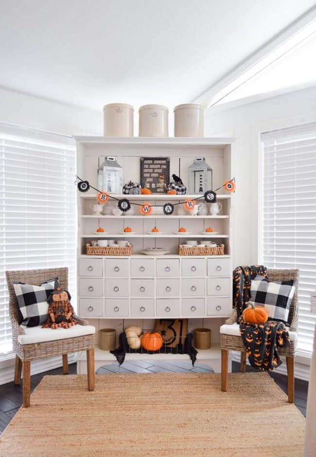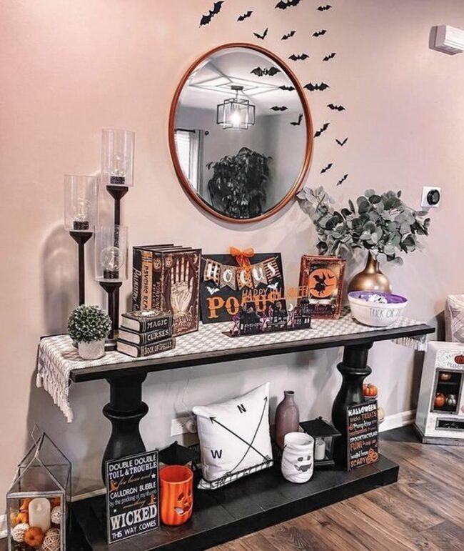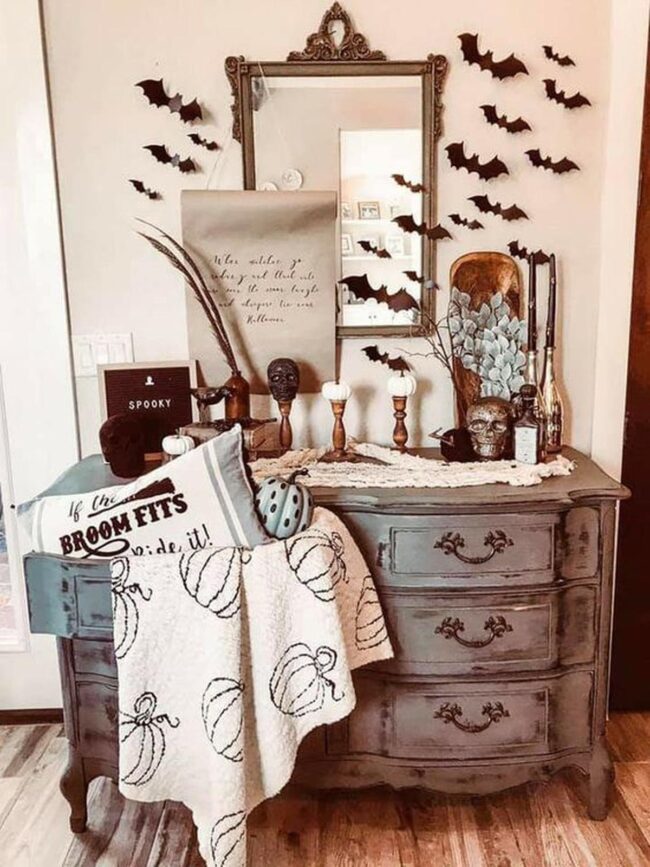 Decorate your space with Halloween magic by crafting a captivating corner that whispers autumn tales.