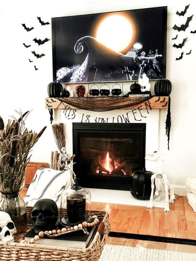 Pumpkins and skulls rebuild your fireplace into a Halloween wonderland that instantly catches everyone's eye.