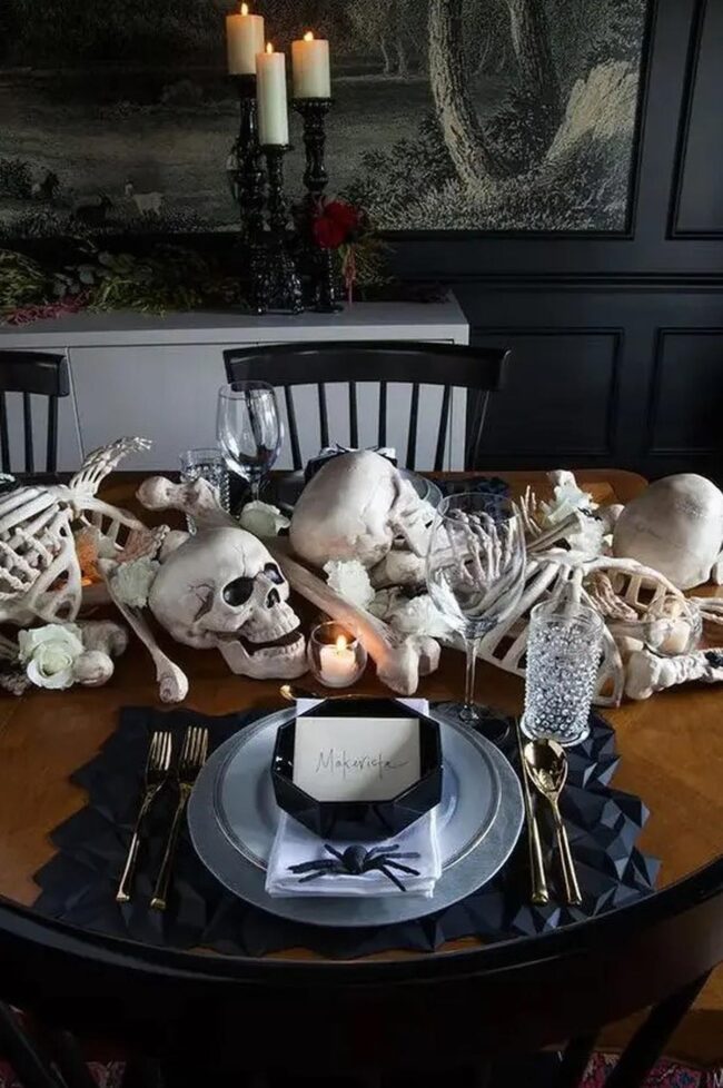 Strategically placed skeleton figurines bring playful personality to your haunting tableau, ensuring each guest feels simultaneously delighted and slightly unnerved.