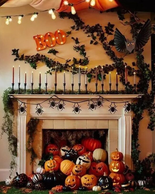Your fireplace becomes a stunning canvas where Halloween spirit meets artistic expression, inviting everyone to pause and appreciate seasonal magic.