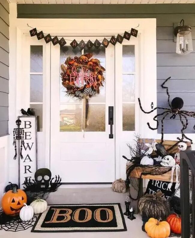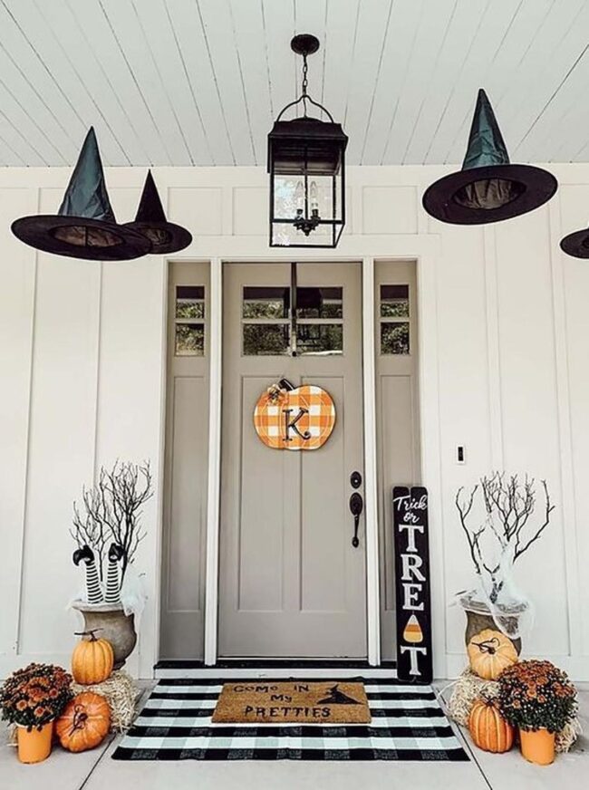 Magical Halloween vibes sweep across your front porch with clever design that feels welcoming yet wonderfully mysterious.