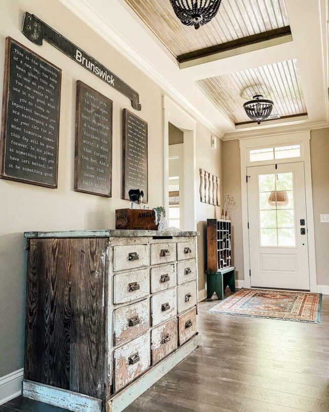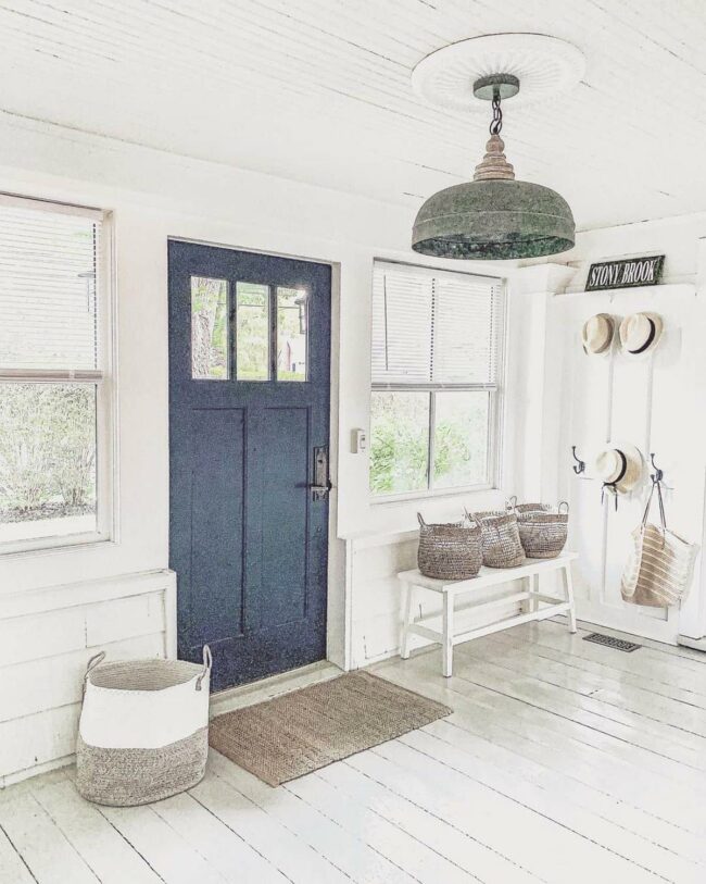White rustic entryway light fixtures radiate warmth and charm instantly.
