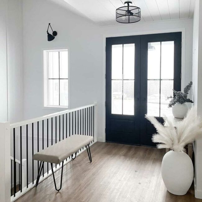 Striking contrast against white doors creates an elegant first impression that catches everyone's eye.