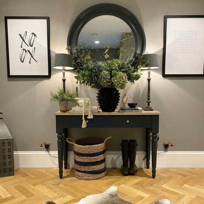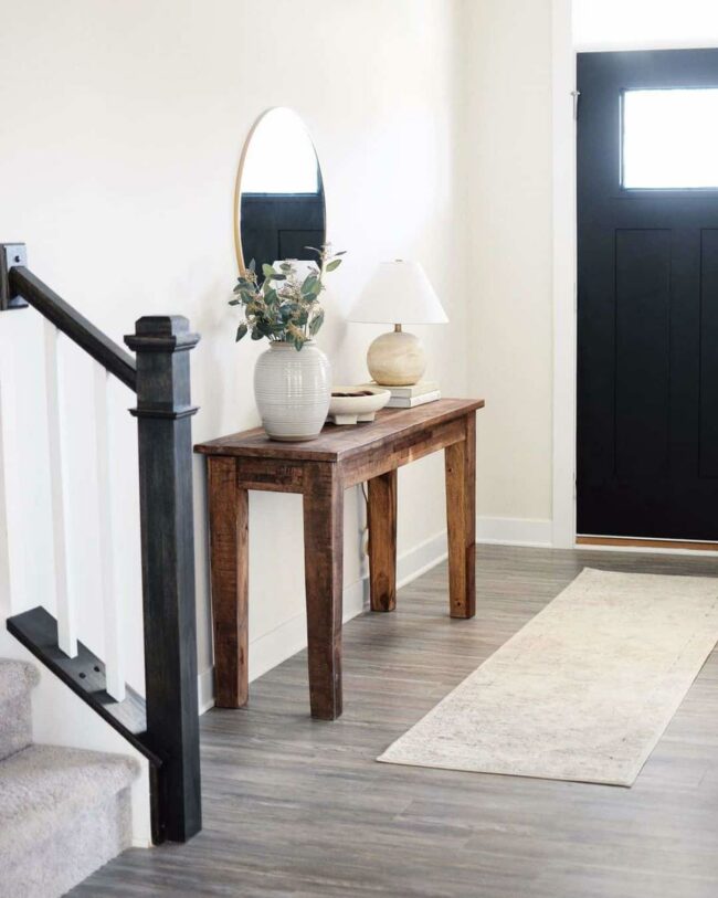 Farmhouse hallway tables radiate organic charm with their natural wood foundations that welcome earthy vibes into your home.