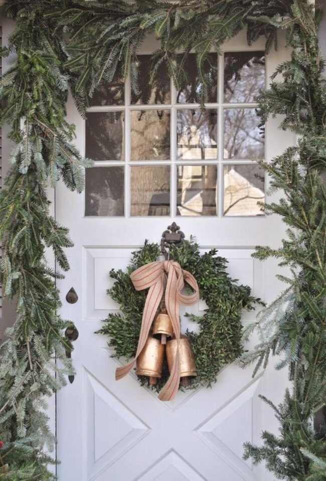 Green pine branches weave a natural welcome, embracing your entrance with soft, inviting textures.