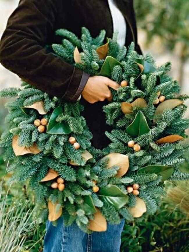 Deck out your doorway with a pine needle wreath that bursts with woodland magic and seasonal spirit.