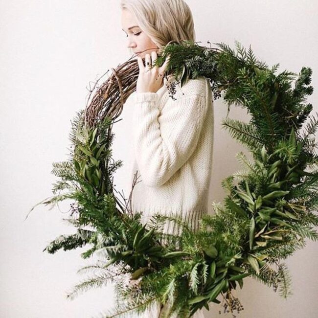 Wooden hoops adorned with pine garlands invite peaceful moments into your living spaces.