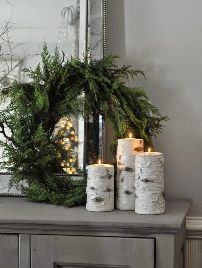 Delicate birch bark candles flicker quietly, spreading gentle shadows across your living spaces with enchanting grace.