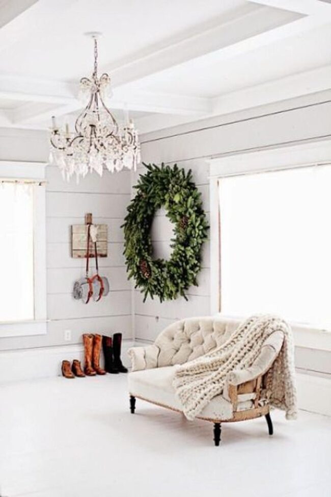 Natural greenery breathes fresh life into your rooms, reflecting winter's peaceful essence with understated grace.