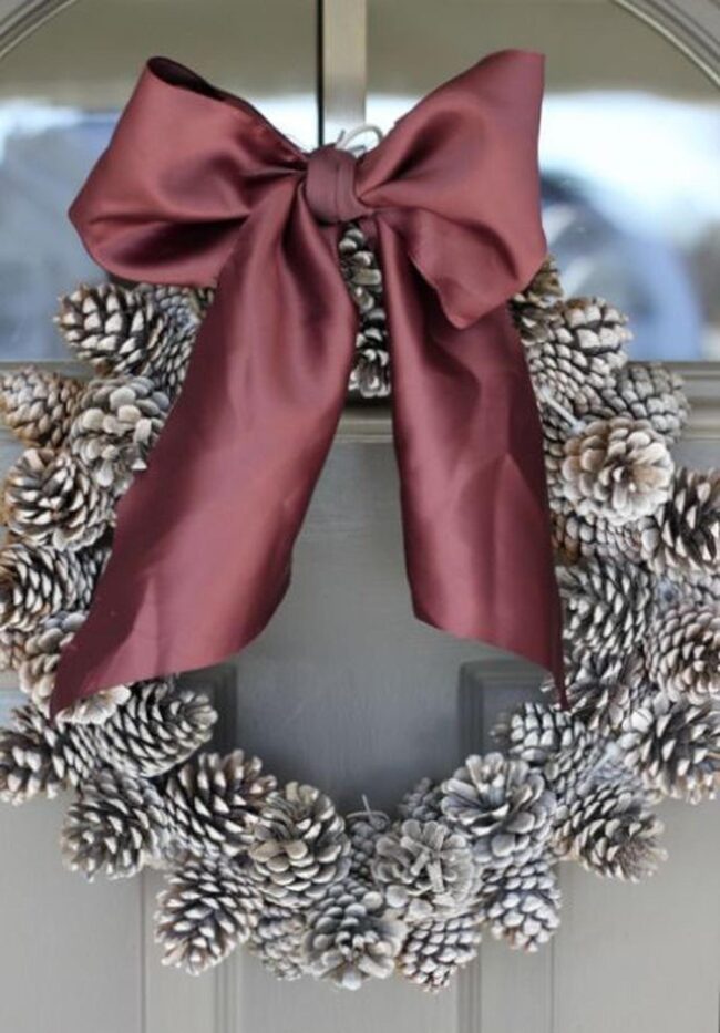 Nature's magic comes alive with pine cones and berries dancing together in a circular embrace that instantly catches your eye.