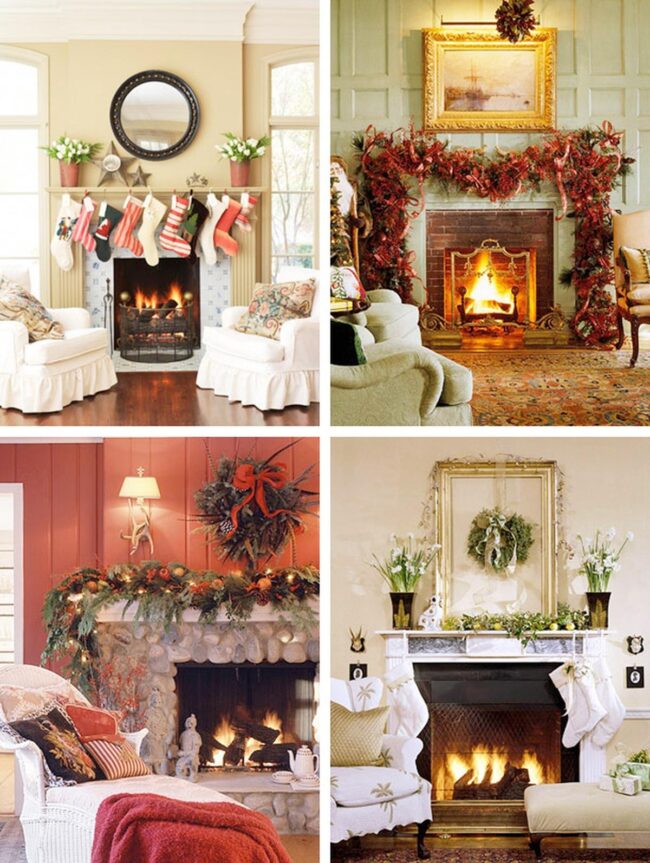 A well-decorated mantel invites family and friends to gather close, filling the room with comfort and festive cheer.