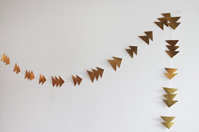 Sleek gold triangles dance elegantly across stark white walls, turning ordinary spaces into captivating art galleries.