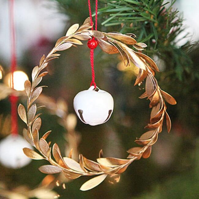Small white jingle bells nestled in wreath centers create charming focal points that spark holiday memories.