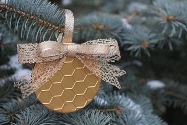 Delicate gold spheres with intricate honeycomb patterns catch sunlight in mesmerizing ways, making every corner shine with festive spirit.