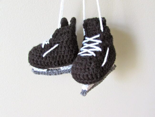 Crochet ice skates bring winter charm right into your living space with their adorable miniature design.