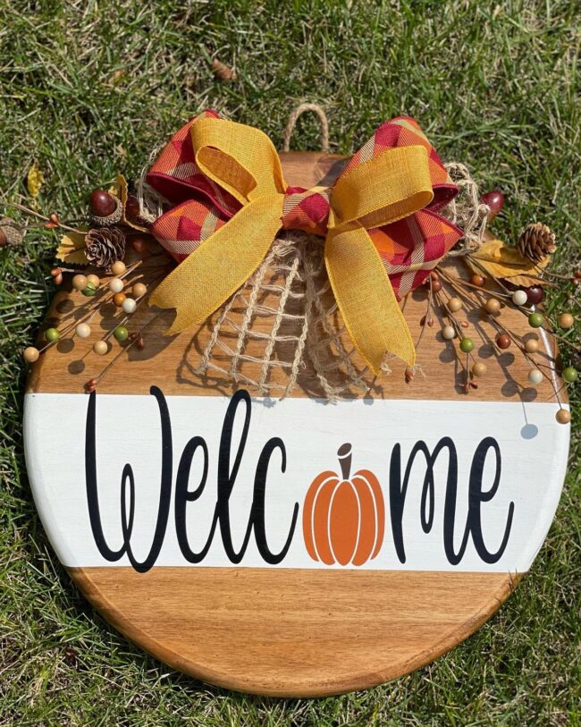 Fall welcomes you with a charming door hanger bursting with seasonal cheer and personality.