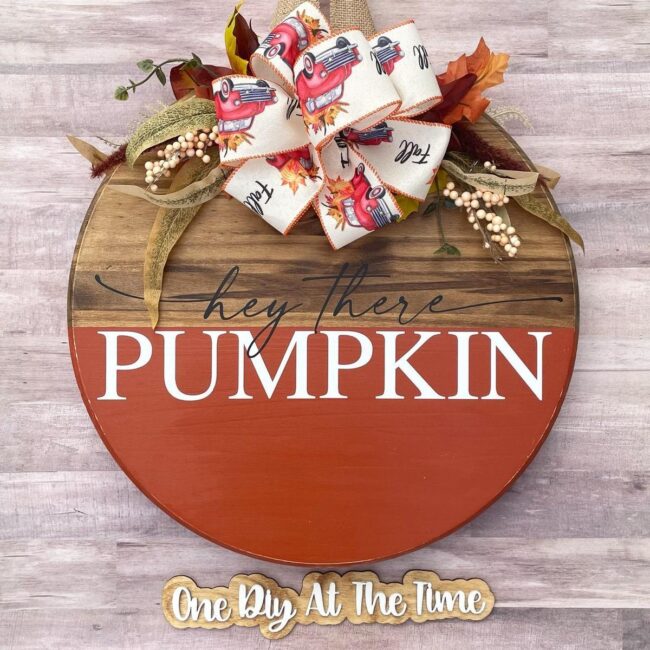 Autumn whispers welcome through a charming wooden door hanger that screams personality with its playful "hey there PUMPKIN" message.