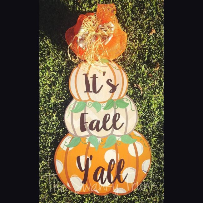 Quirky lettering spelling "It's Fall Y'all" brings instant cheer and personality to the scene, making viewers smile with its playful message.