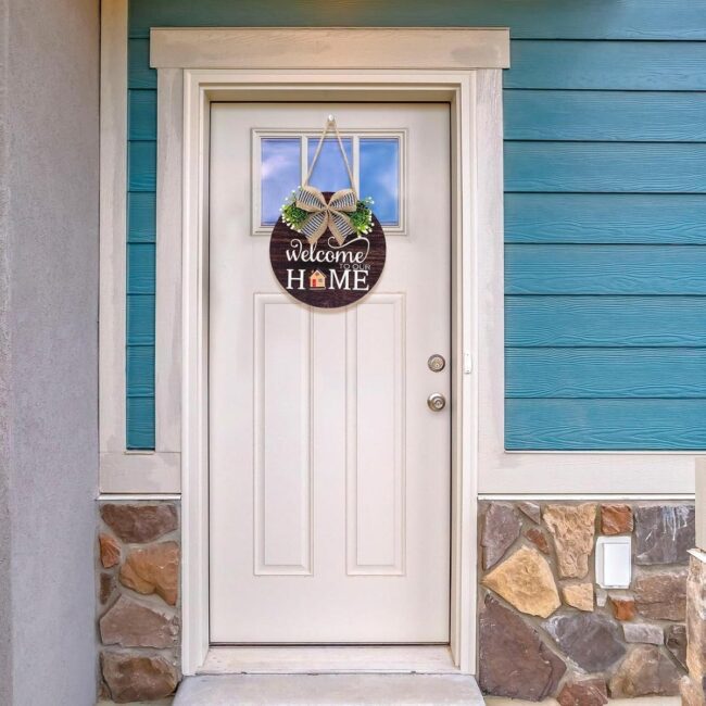 Welcome home vibes burst from a charming wooden door hanger that instantly connects with anyone stepping inside.