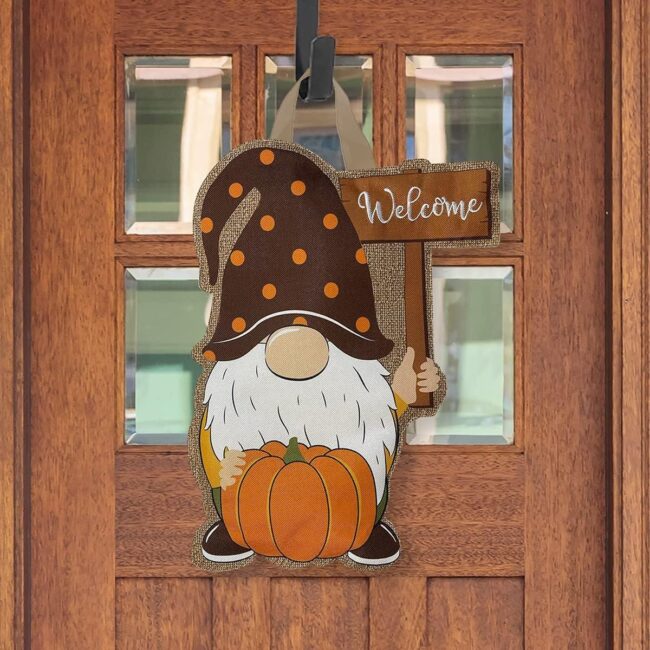 Your front door will instantly spark joy with a whimsical gnome hanger that radiates autumn cheer.