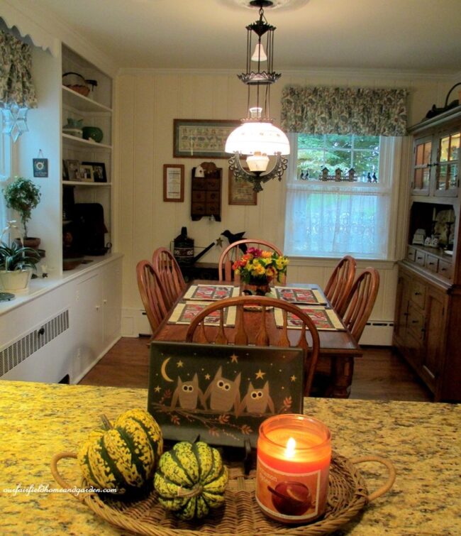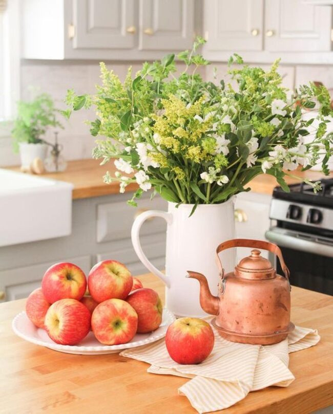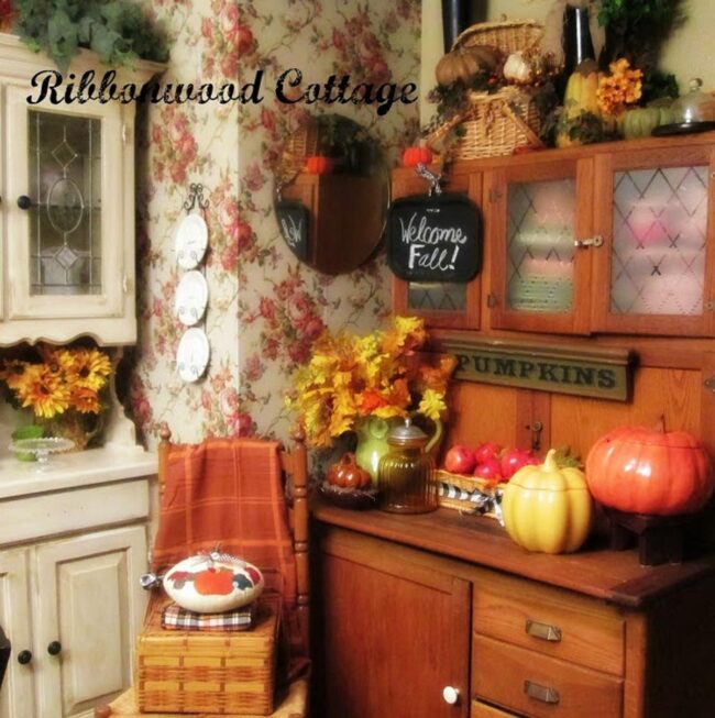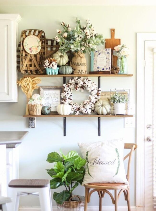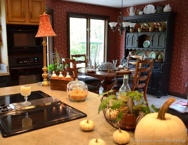 Subtle seasonal touches like these effortlessly spark joy, upgrading an ordinary kitchen corner into a welcoming autumn sanctuary that feels both natural and intentional.