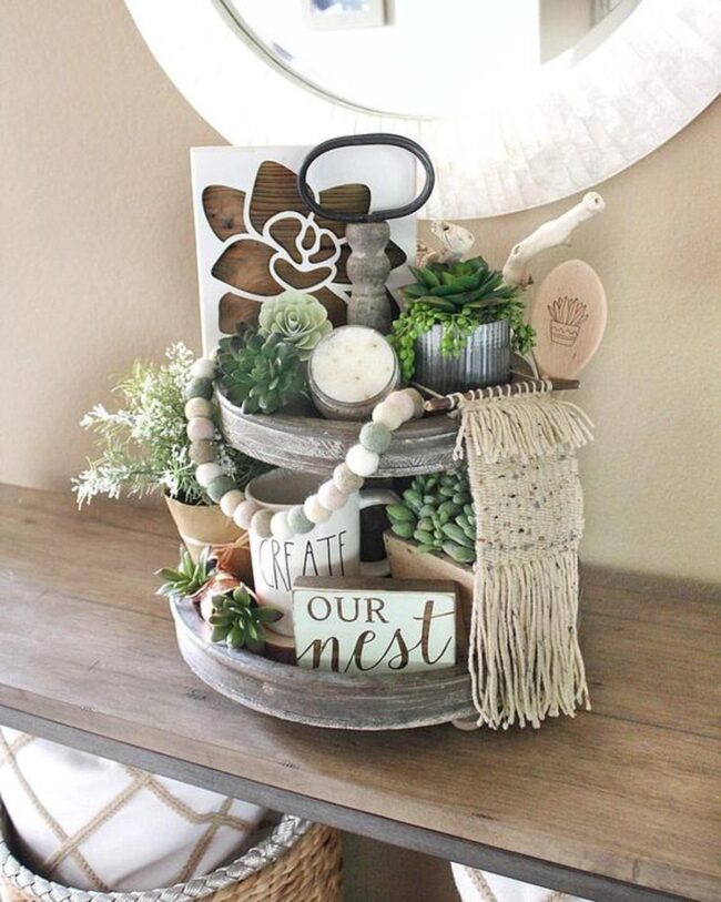 Your home deserves a delightful wooden two-tier tray that develops an instant conversation starter with its charming personality.