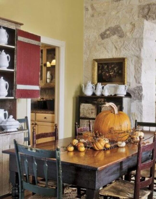 Pumpkins, wooden accents, and earthy tones work together beautifully during this transitional season.
