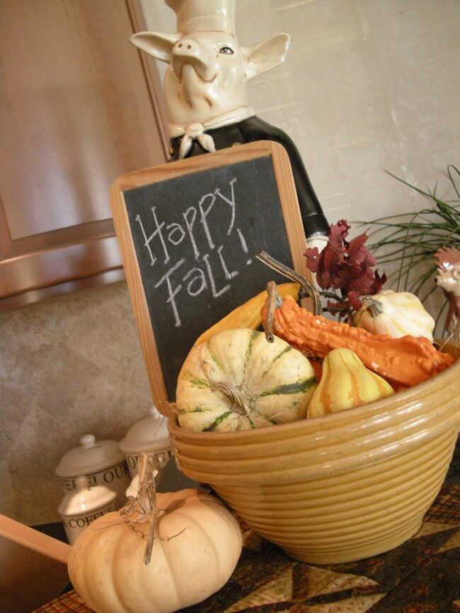 Charming handwritten signs with fall messages peek out, inviting you to embrace the season's magic without feeling overwhelmed.