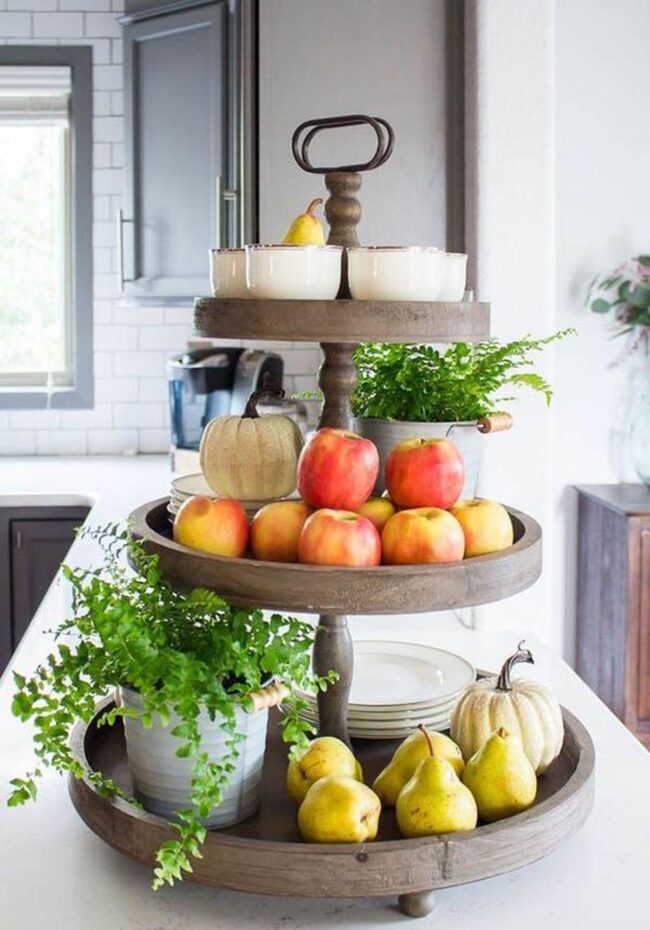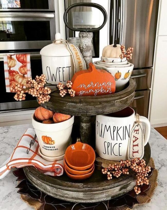 Wooden three-tier stands become mini art galleries displaying seasonal fruits and adorable miniature pumpkins that spark conversation and delight.