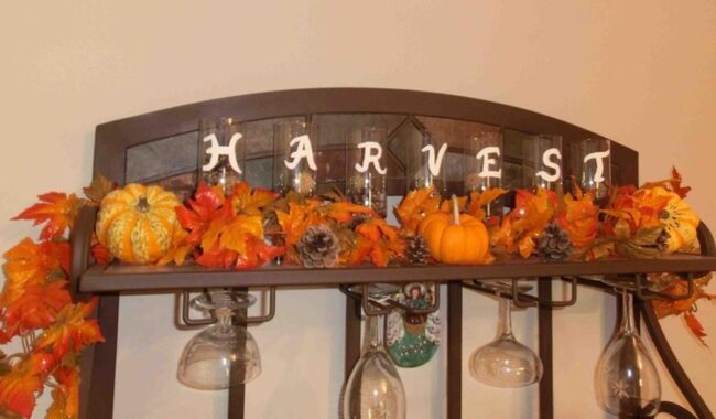 Fall decorations stylize your living space into a welcoming haven where wooden furniture and seasonal accents dance together beautifully.