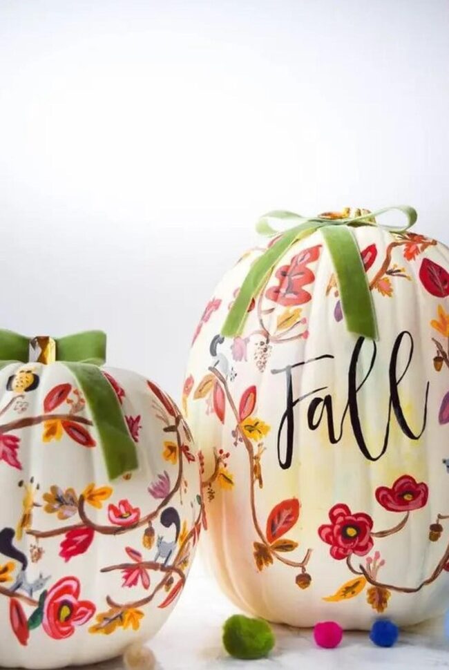Delicate floral-decorated pumpkins strategically placed around the room whisper autumn's arrival without shouting for attention.