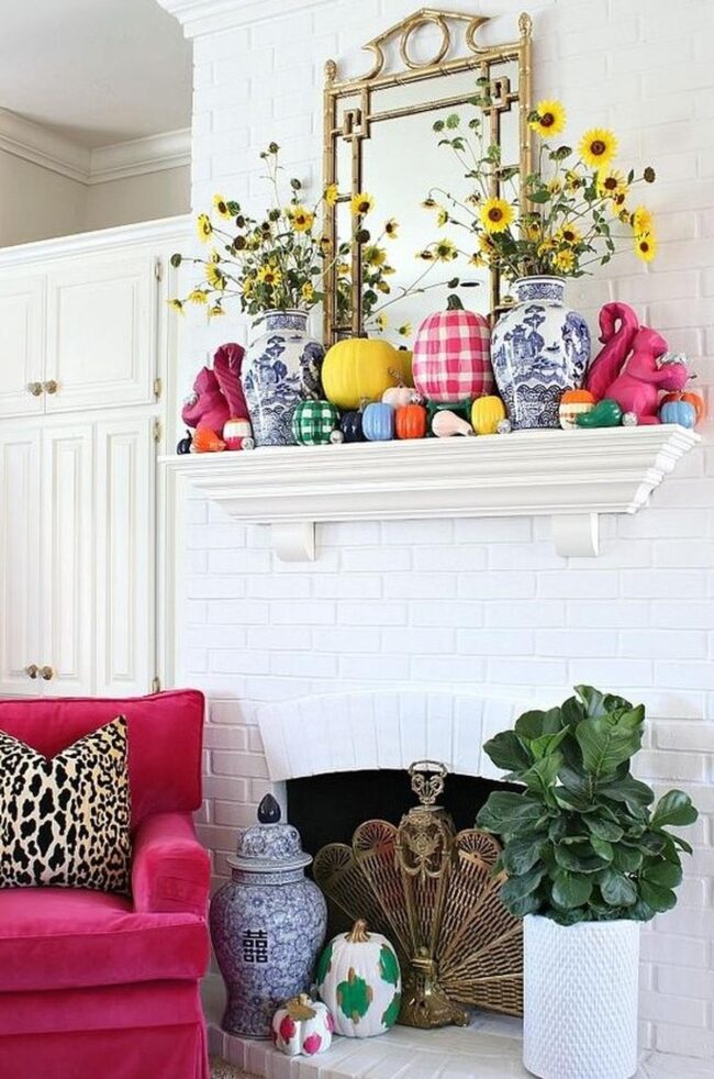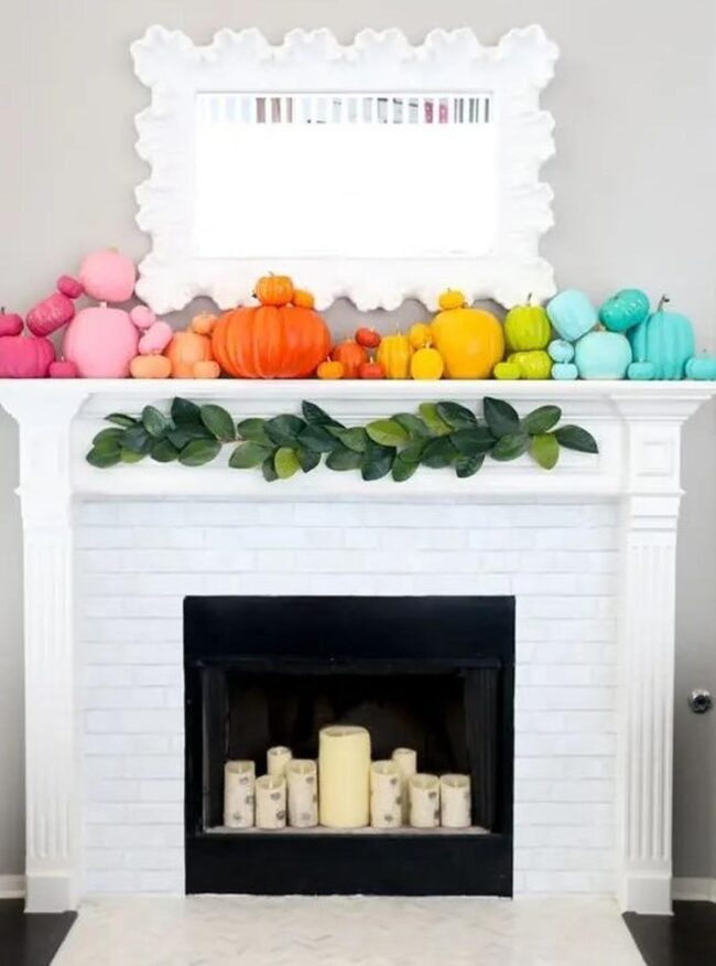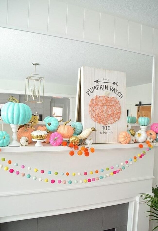Soft pastel pumpkins in dreamy teal, peach, and pink dance across your mantel, instantly altering the space into a magnetic autumn scene.