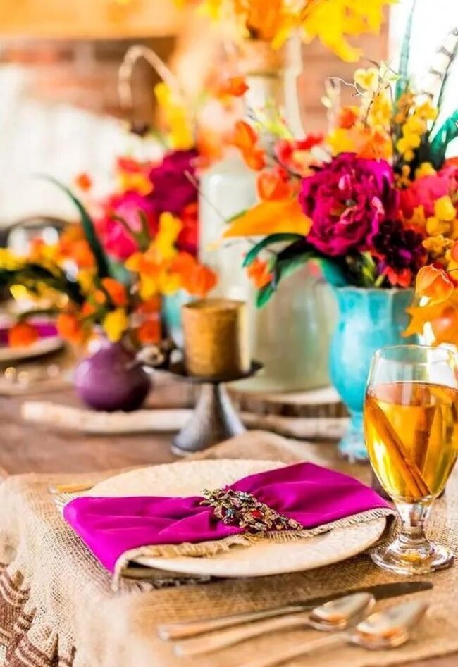 Stunning table decorations burst with unexpected color combinations that make your dining space pop with personality.