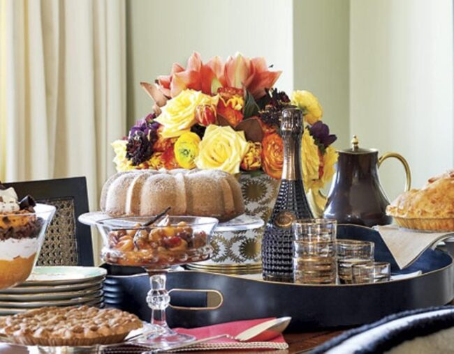 Sparkling wine glasses stand ready, waiting to complement your carefully curated autumn tableau.