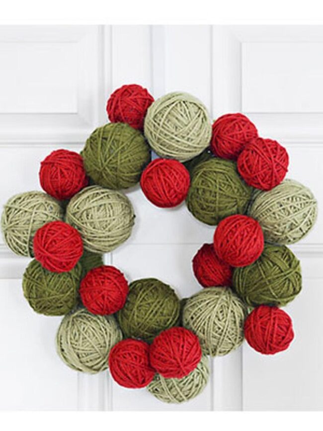 Yarn ball wreaths burst with festive cheer, reshaping ordinary doors into holiday wonderlands that spark instant joy.