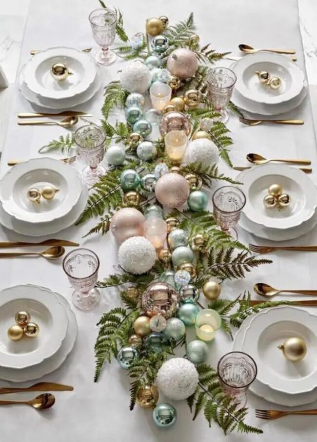 Delicate pine sprigs weave between the decorations, infusing natural elegance into the holiday collection.