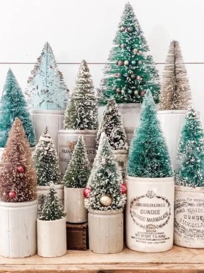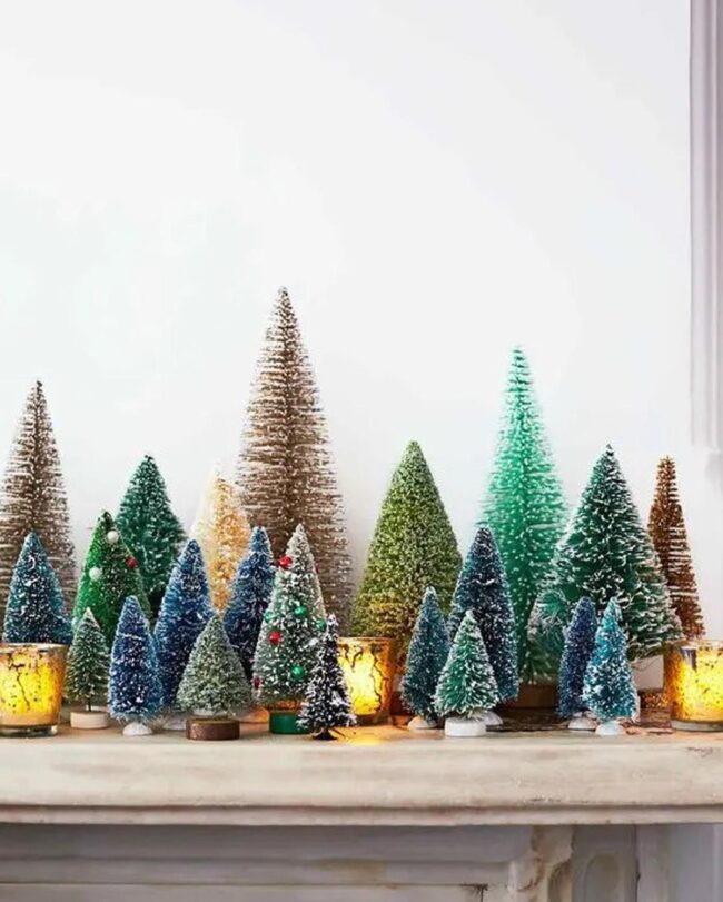 Sprinkle magic into your holiday space with a delightful forest of mini Christmas trees that dance with personality and charm.