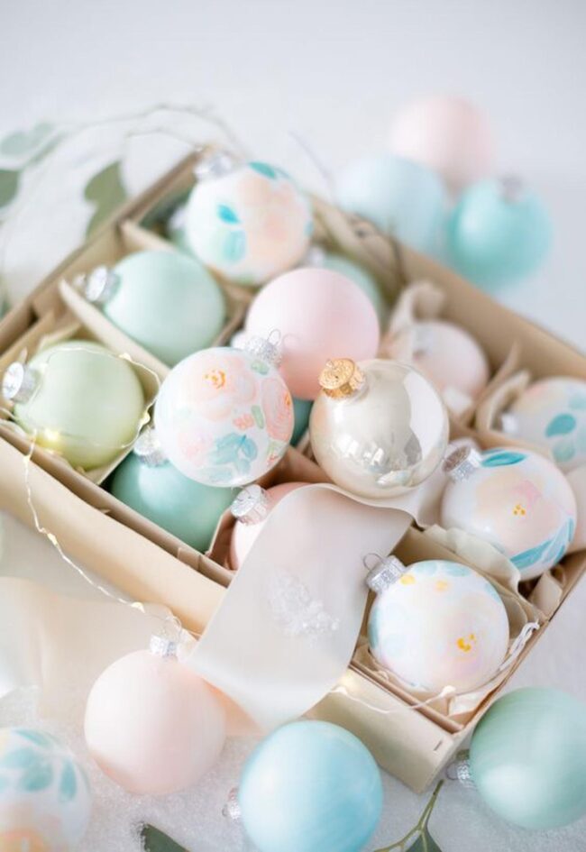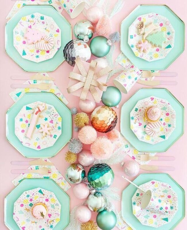 Gentle pink, mint green, and baby blue colors dance together, breaking away from traditional holiday palettes and inviting fresh excitement.