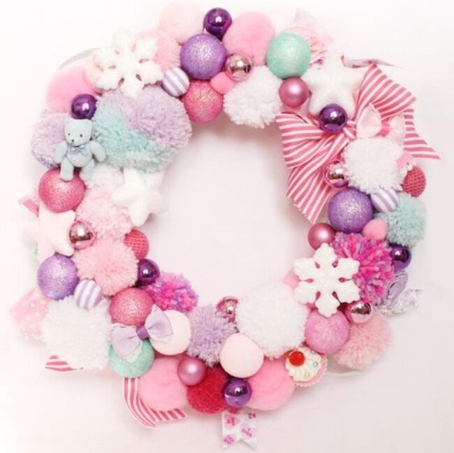 Soft pink, dreamy blue, sunny yellow, and creamy white ornaments dance gracefully across frosted branches, creating a magical winter wonderland inside your living space.